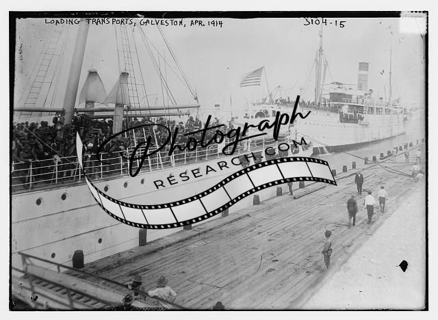 Loading transports,Galveston,Texas,April 1914,American flag,ship,people
