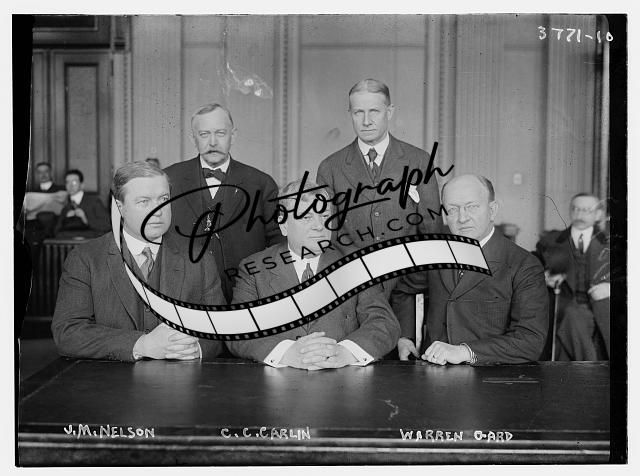 J.M. Nelson; C.C. Carlin; Warren Gard,five men posed behind table,Bain News