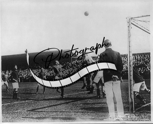 America defeats Denmark in soccer football,view from goal line,Sports,1919