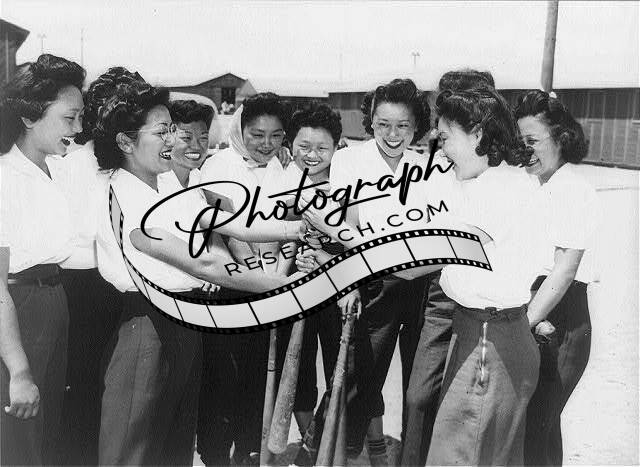 Girls,Japanese Ancestry,Softball,War Relocation Authority Center,Manzanar,1942