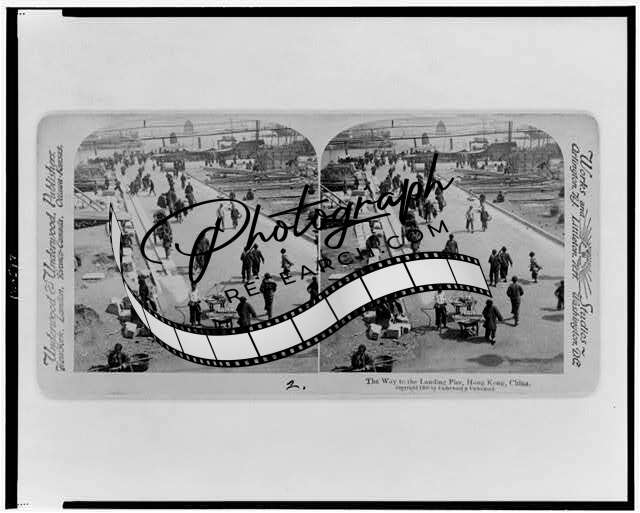 Photo of Stereograph,Landing Pier,Hong Kong,China,Street Scene,Pedestrians,c1900