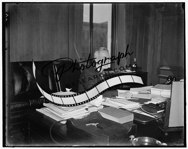 Sutherland celebrates 75th birthday,Justice George Sutherland,office,desk,1937