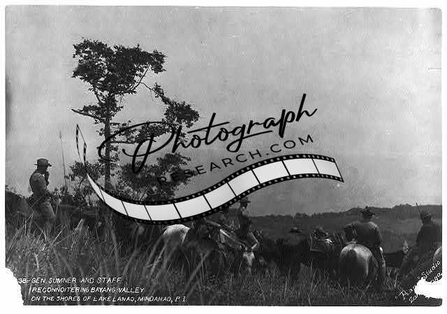 Title: Gen. John J. Pershing and officers reviewing troops (among civilians) (in the Philippine Islands?)