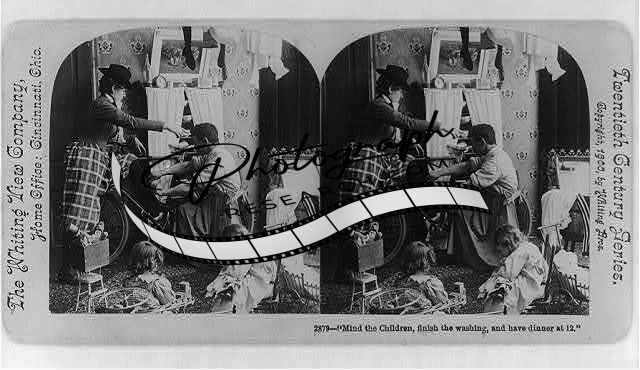 'Mind the children,finish the washing,have dinner at 12',c1900,man ties her boot