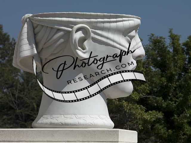 Title: Sculpture 'Urns of Justice' at exterior entrance plinith of the John M. Shaw U.S. Courthouse, Lafayette, Louisiana