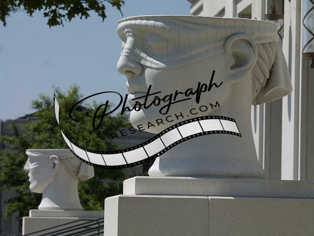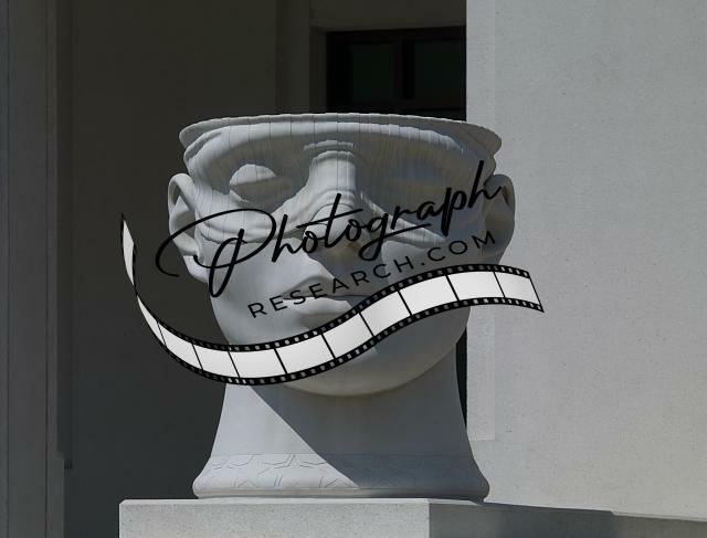 Title: Sculpture 'Urns of Justice' at exterior entrance plinith of the John M. Shaw U.S. Courthouse, Lafayette, Louisiana