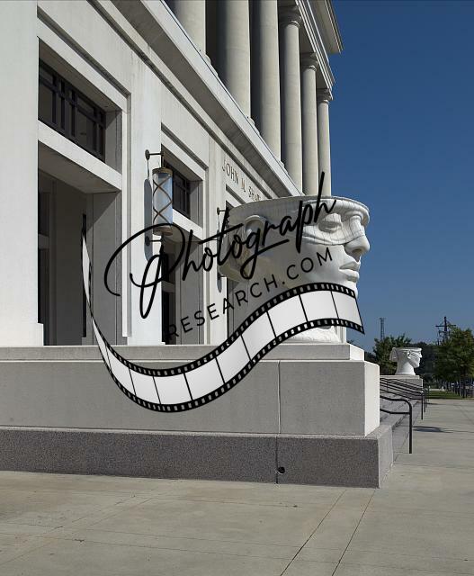 Title: Sculpture 'Urns of Justice' at exterior entrance plinith of the John M. Shaw U.S. Courthouse, Lafayette, Louisiana