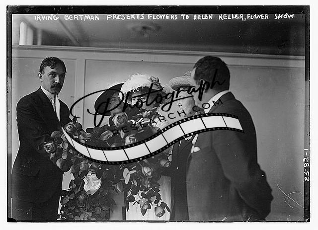 Irving Bertman presents flowers to Helen Keller,Flower Show,April 7,1913