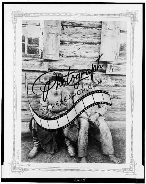 Two Older Men Outside of Log House,Russia,1895?,Clothing & Dress