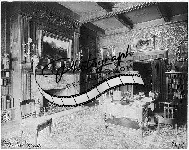 Warder House,Washington,DC,Library,fireplace,desk,bookshelves,1900?,FB Johnston