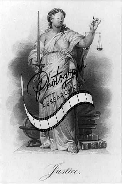 Justice,blindfolded woman holding sword and scale,allegory