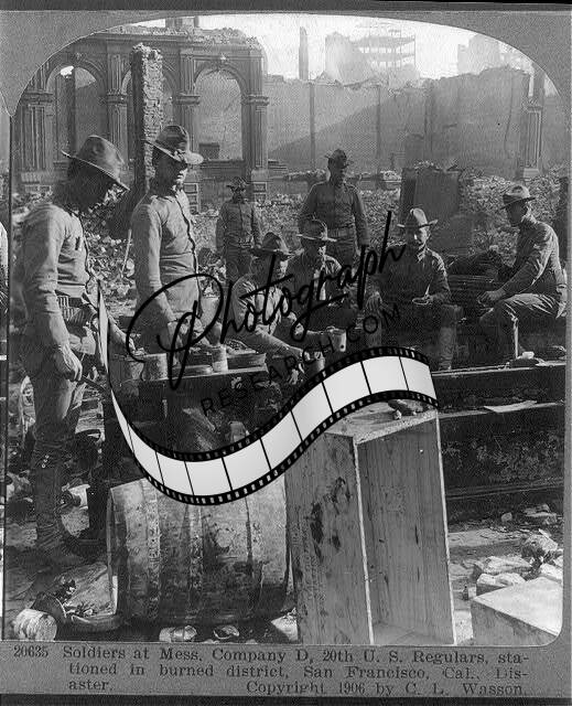 Soldiers at Mess,Company D,20th US Regulars,San Francisco,California,Disaster
