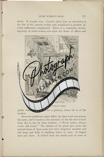Illus. in: Darkness and daylight: or, Lights and shadows of New York life. A woman's narrative of mission and rescue work in tough places, with personal experiences among the poor in regions of poverty and vice / by Mrs. Helen Campbell, Col. Thomas W. Knox, Inspector Thomas Byrnes. Hartford, Conn. : A.D. Worthington & Co., publishers, 1891, p. 178.
