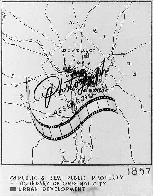 Photo of Map of Washington,D.C.,boundary of original city,1857,urban development