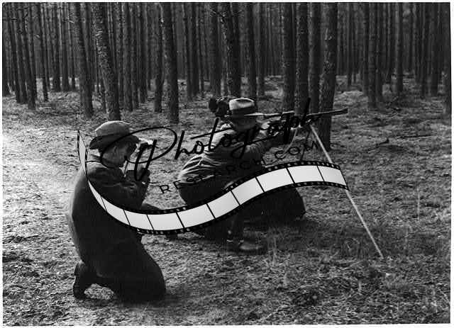 2 men of Goering's hunting party standing in blind, Bialowiecza, Poland