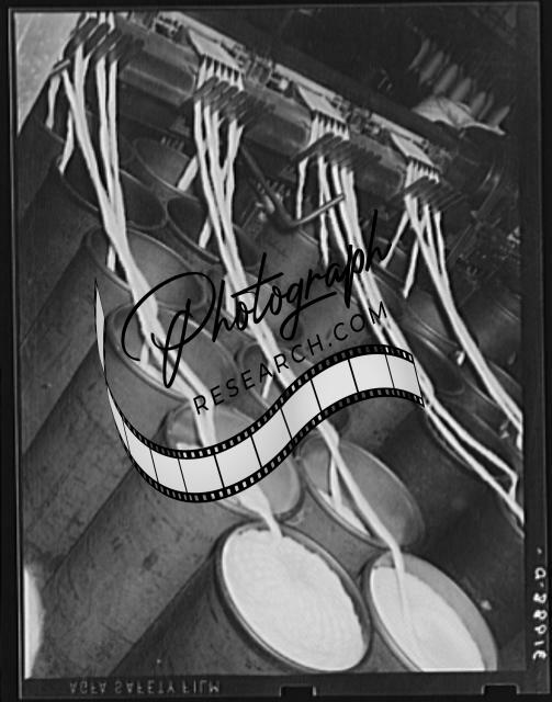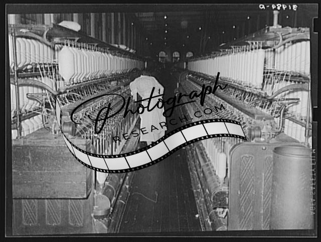 Title: Threading cotton ropes into thread-making machine. Laurel cotton mill, Laurel, Mississippi