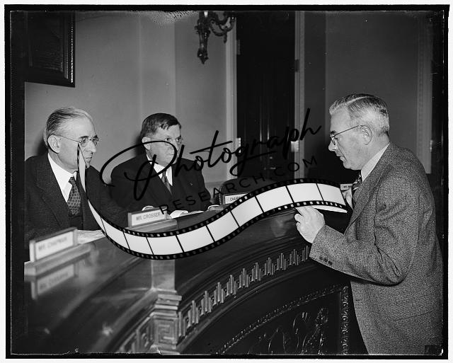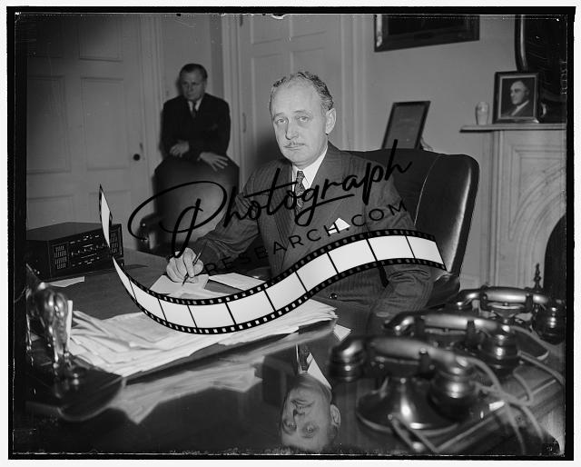 Title: Aid to refugees planned at White House. Washington, D.C., April 13. Experts on the refugee problem shown leaving the White House today after conferring with President Roosevelt, the group met with the President to go over preliminaries to an international conference to help political refugees form Germany and Austria, left to right; Prof. Joseph P. Chamberlain, New York, Asst. Sec. of State Messersmith, Rabbi Stephen S. Wise, Henry Morgenthau, Rev. Samuel Cavert, New York, Rev. Michael J. Ready, Sec. of Labor Frances Perkins, and Lewis Kenedy, New York, 4/13/38