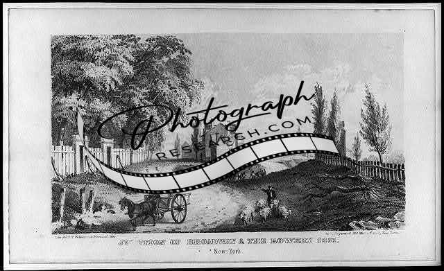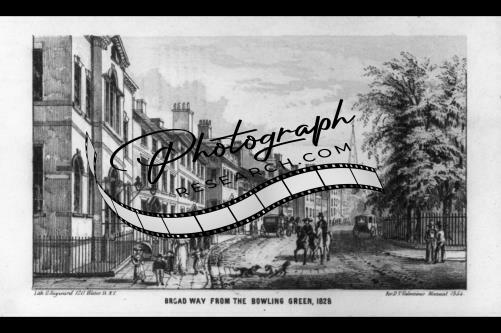 Broadway from the Bowling Green,New York,NY,1828,Carriage,Street Scene