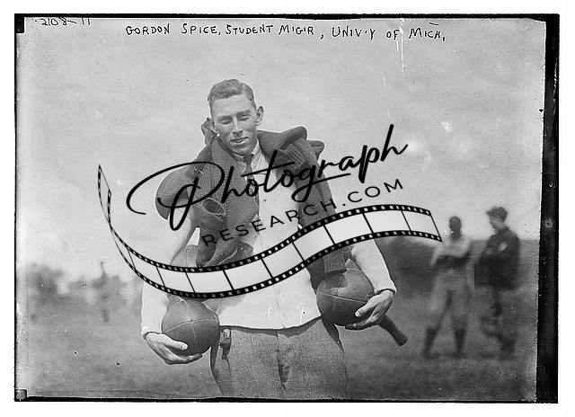 Gordon Spice,student manager,University of Michigan,holding 4 footballs