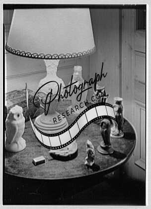 Title: Joseph Mullen, residence at 132 E. 72nd St., New York City. Owls on table with lamp