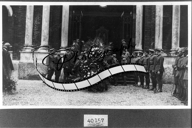 Funeral of Lieutenant King,Italian Front,World War I,WWI,c1918,Wreath,Ceremony