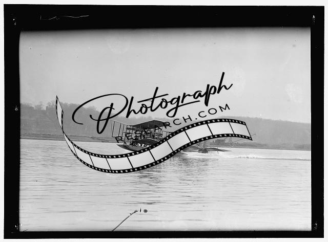 Richardson Tandem Biplane Hydroplane taking off on Potomac River,April 1916