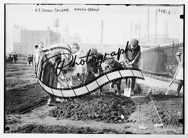 School children,digging,making garden,New York,NY,shovel,dirt,girls,boys 1
