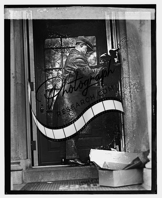 Man hanging something in doorway,1924