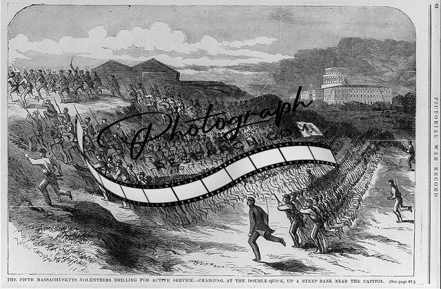 Fifth Massachusetts Volunteers drilling,active service,Capitol,1861,Civil War