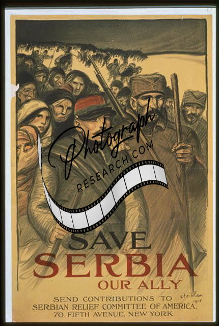 Save Serbia our ally,World War I,WWI,Serbian Soldiers,Refugees,1916,Mountains