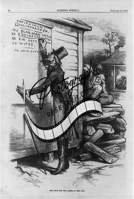 Color line still exists-in this case,cartoon,Uncle Sam,Eddikashun qualifukashun