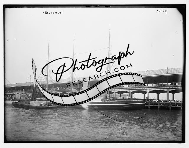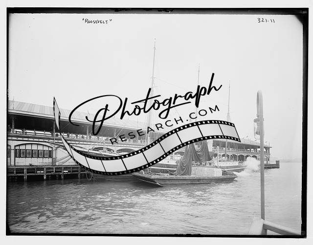 Roosevelt's crew: 1st Mate Gushie,Chief Eng. Wardwill & the men,standing on ship