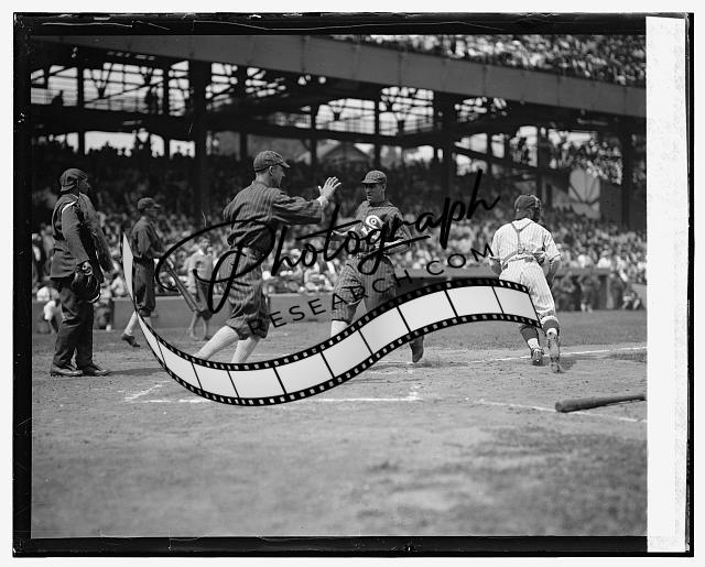 Yankees Babe Ruth out at third,Lou Gehrig single,Ossie Bluege,Baseball,1925