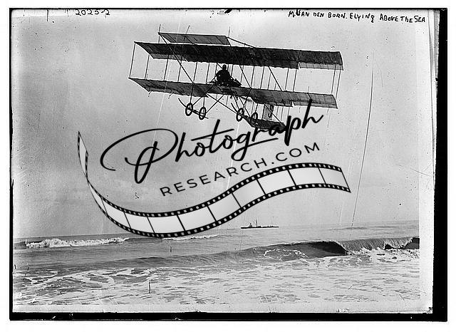 M. Van den Born flying above the sea. A ship is on the horizon,Airplane,waves