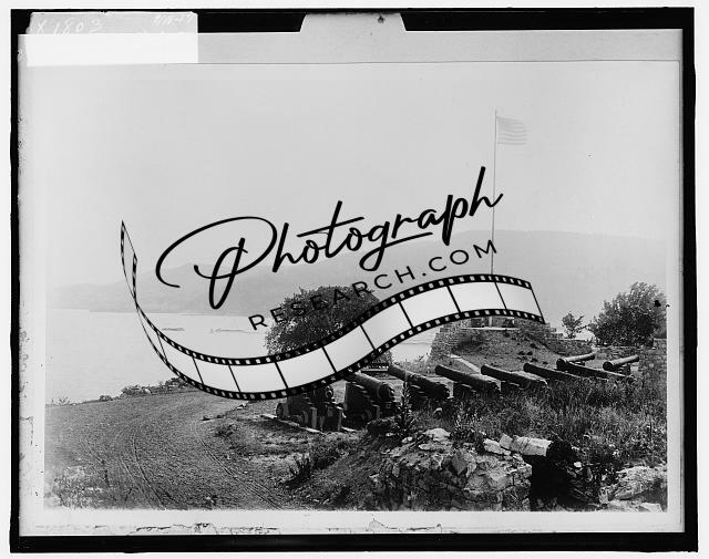 Fortification with flag,Delaware or Hudson River,Cannons,escarpment,c1910