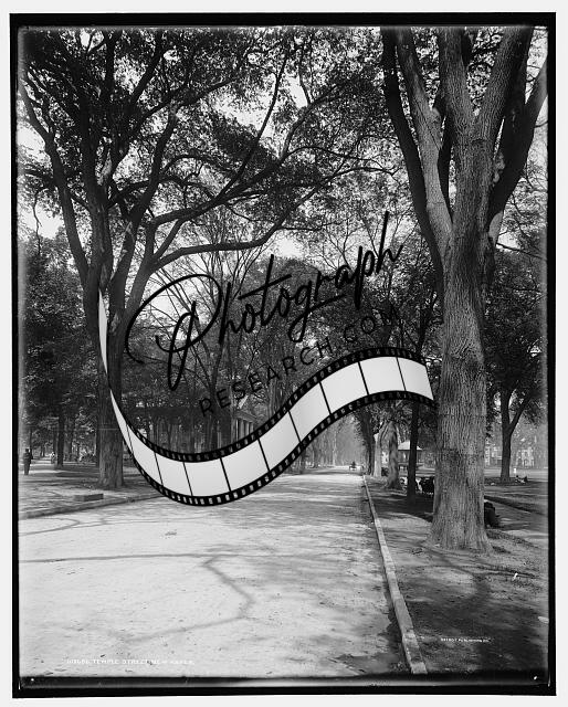 Temple Street,trees,roads,New Haven,Connecticut,Detroit Publishing Company,c1900