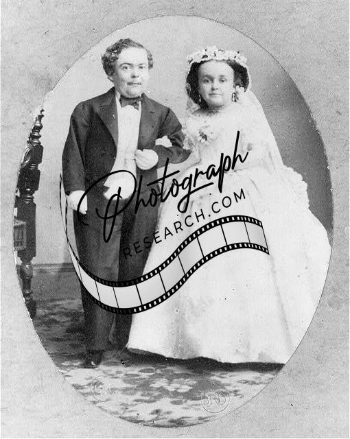 Tom Thumb,1838-1883,with wife in wedding costume,1863