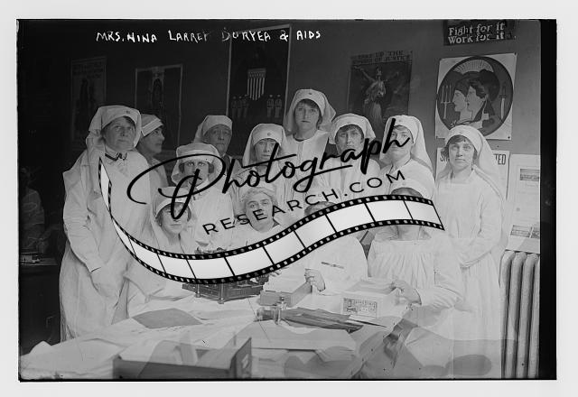 Mrs. Nina Larrey Duryea & aids,women nurses,typewriter,table,Bain News Service