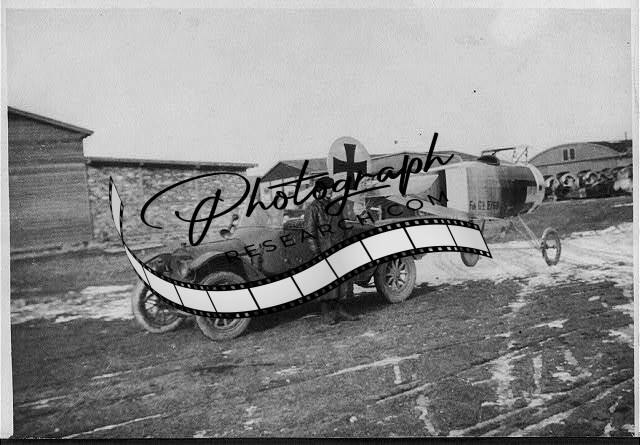 Fokker DV - rear,side view of airplane,man alongside automobile,World War I,WWI