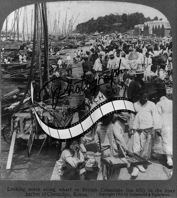 Sea Going native Junks along Wharf,Chemulpo,Korea,Harbor,Boats,c1904,Waterfront