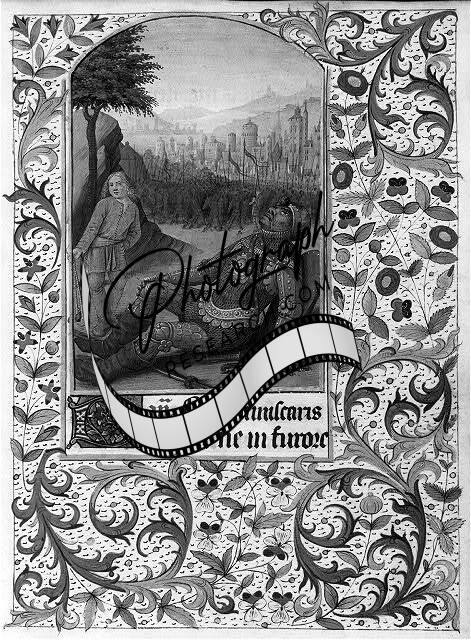 Medieval illuminated manuscripts: David slaying Goliath,bible,death allegory