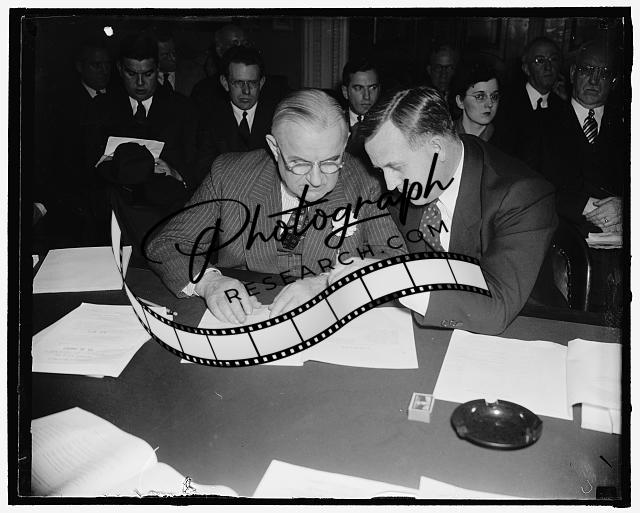 Title: Justices attend funeral services for deceased Supreme Court Marshall. Washington, D.C., April 28. Chief Justice Charles Evans Hughes and Associate Justice James Clark McReynolds leaving Holy Trinity Catholic Church today after attending funeral services for the late Frank Key Green, marshal of the United States Supreme Court for the last 23 years. In the rear can be seen Associate Justice and Mrs. Pierce Butler, 4/28/38