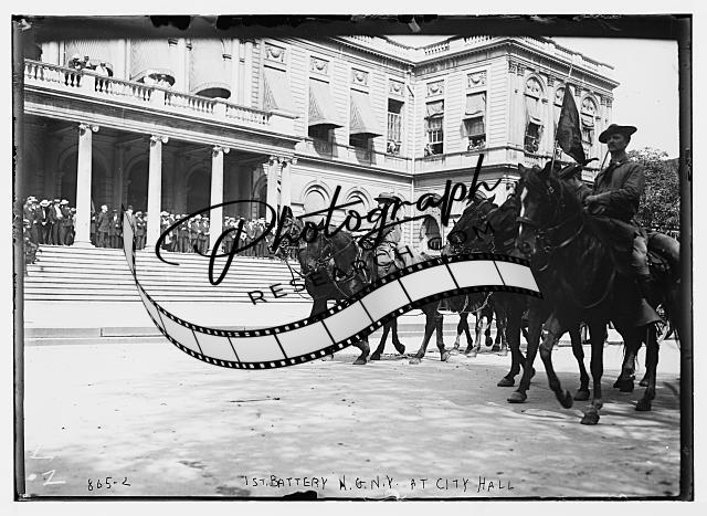 1st Battery US Army troops on horse-back in front of City Hall,New York,NY,1909