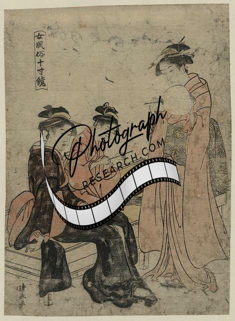 Hanabi,Kiyonaga Torii,Photo of Ukiyo-e,Japan,Young Woman,Bench,1785-1789