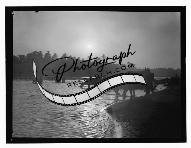 Iraq,cows in moonlight at river,or sunrise or sunset,Middle East,American Colony