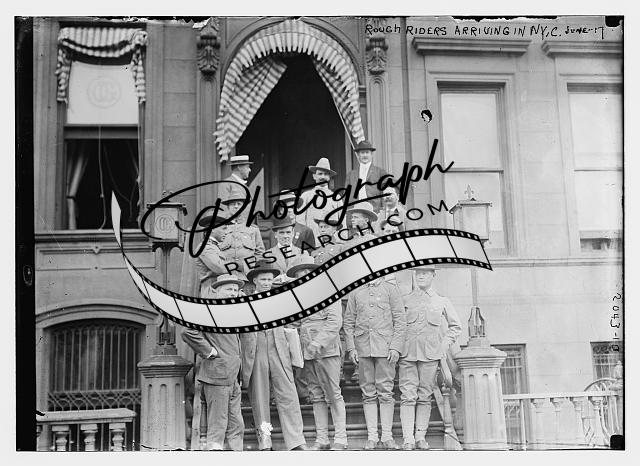 Rough Riders Arriving in N.Y.C.,June 17,New York City,men posed on steps