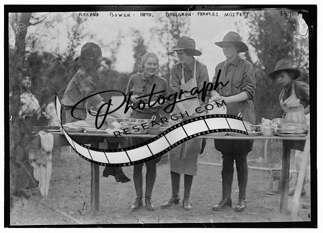 Roxana Bowen,Katherine Dahlgren,Fran Moffett,women,table full of dishes,Bain