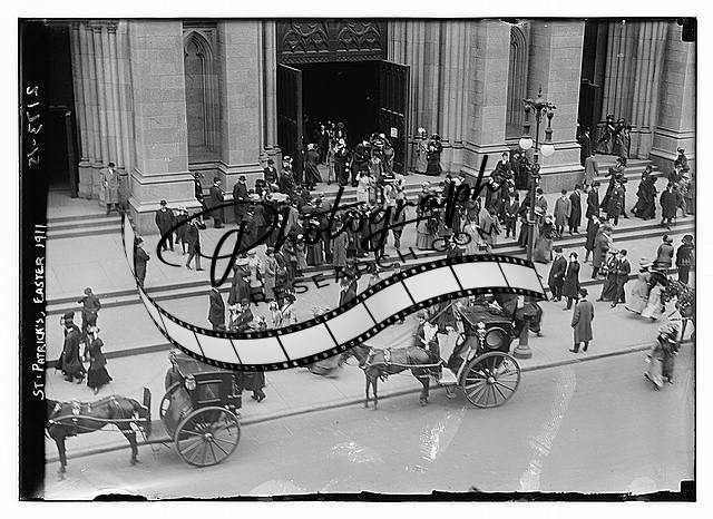 Saint Patrick's Easter 1911,horse drawn carriages,people,streetlamps,Bain News