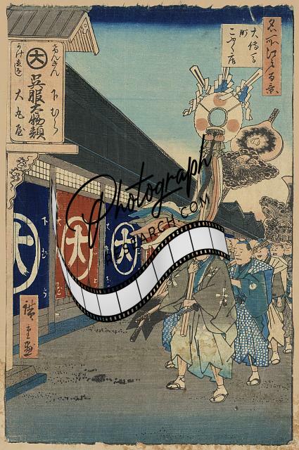 Kanda kon'ya-cho,Hiroshige Ando,Photo of Ukiyo-e,Japan,Mount Fuji,1857,Dyed
