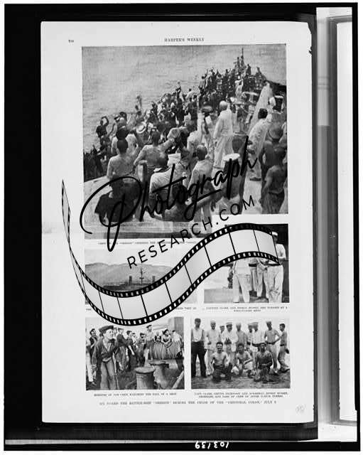 Board,battleship,Oregon during chase,Cristóbal Colon,Battle,Santiago,Cuba,1898